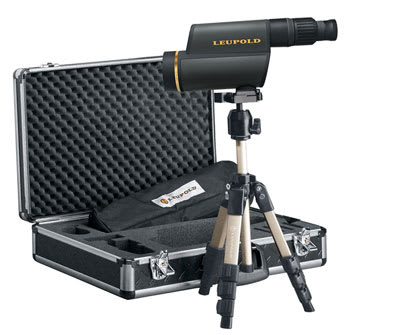 This shadow gray Leupold GR 12-40x60mm HD Kit features magnesium housing, proprietary nitrogen fill process, xtended twilight lens system, DiamondCoat2, digital camera compatibility, and advanced HD lens system.