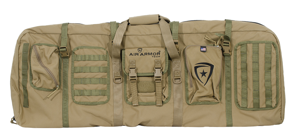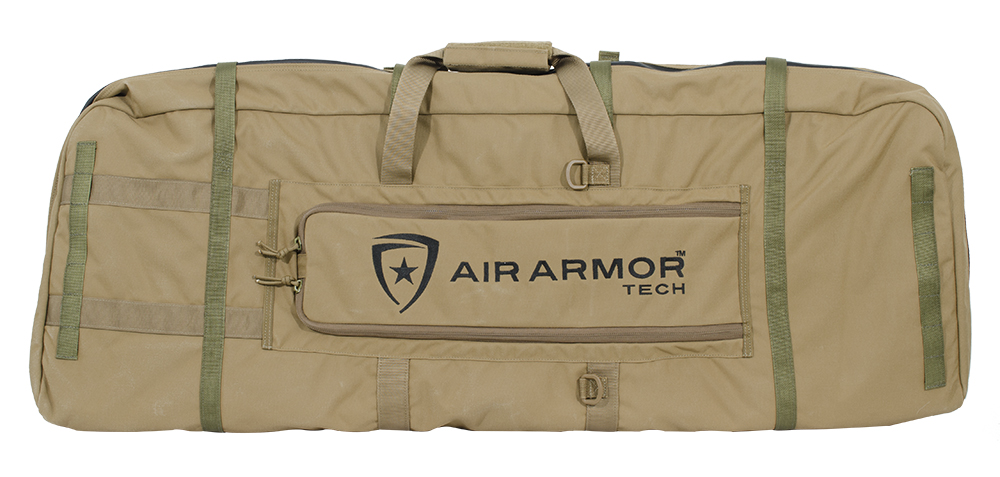 With an inflated interior case size of 44"x14", this case is designed to carry a 42" overall length weapon system with the barrel inserted into the muzzle pocket. When deflated, the case can be rolled down into a 17" wide roll with only an 8" diameter, which is easily small enough to fit into a backpack!