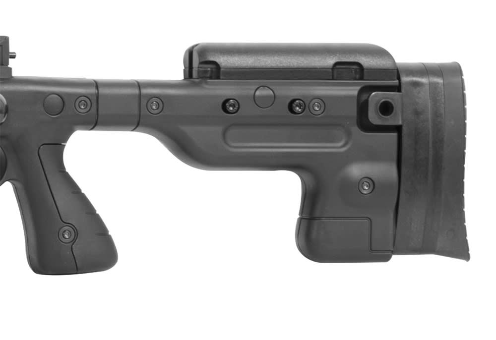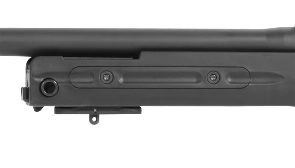 - 20mm diameter close-fitting bolt with 6 locking lugs and AI one-piece extractor. To minimize hand movement, the short 60° throw bolt is positioned close to the stock, and just above the trigger.