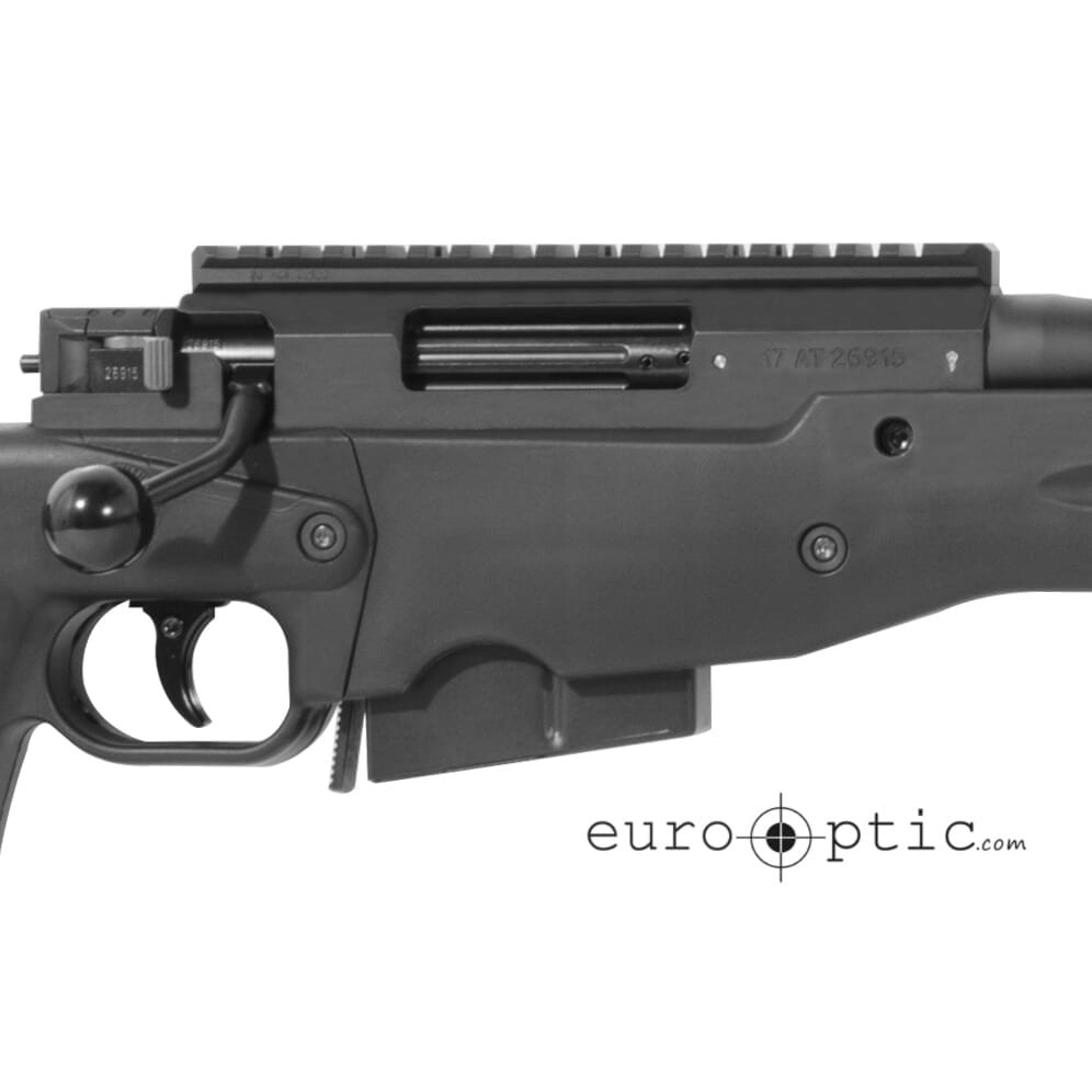- 20mm diameter close-fitting bolt with 6 locking lugs and AI one-piece extractor. To minimize hand movement, the short 60° throw bolt is positioned close to the stock, and just above the trigger.