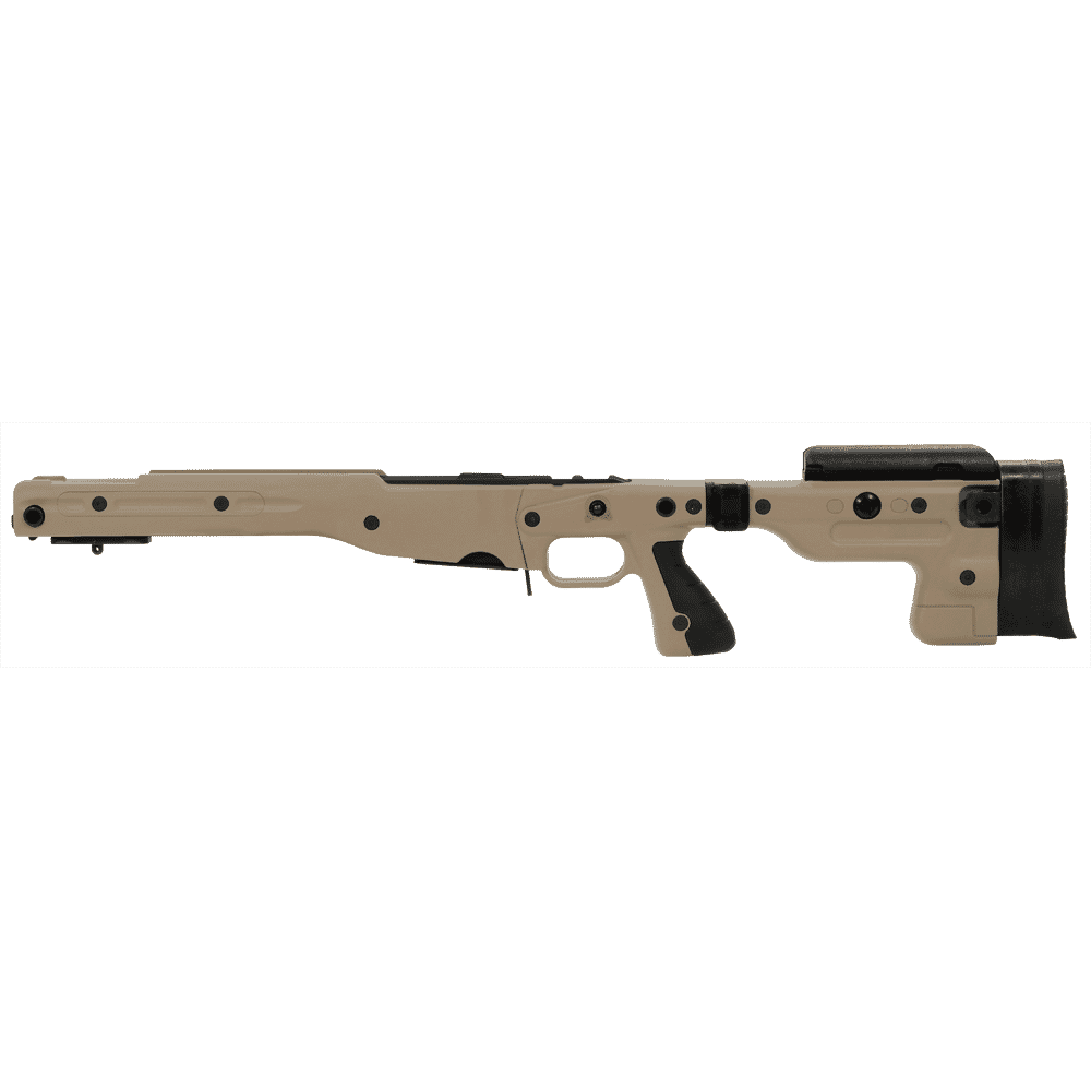 • AX style pistol grip with traditional thumbhole stock sides available as an option.