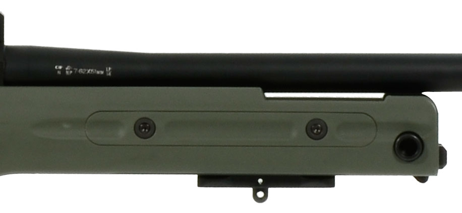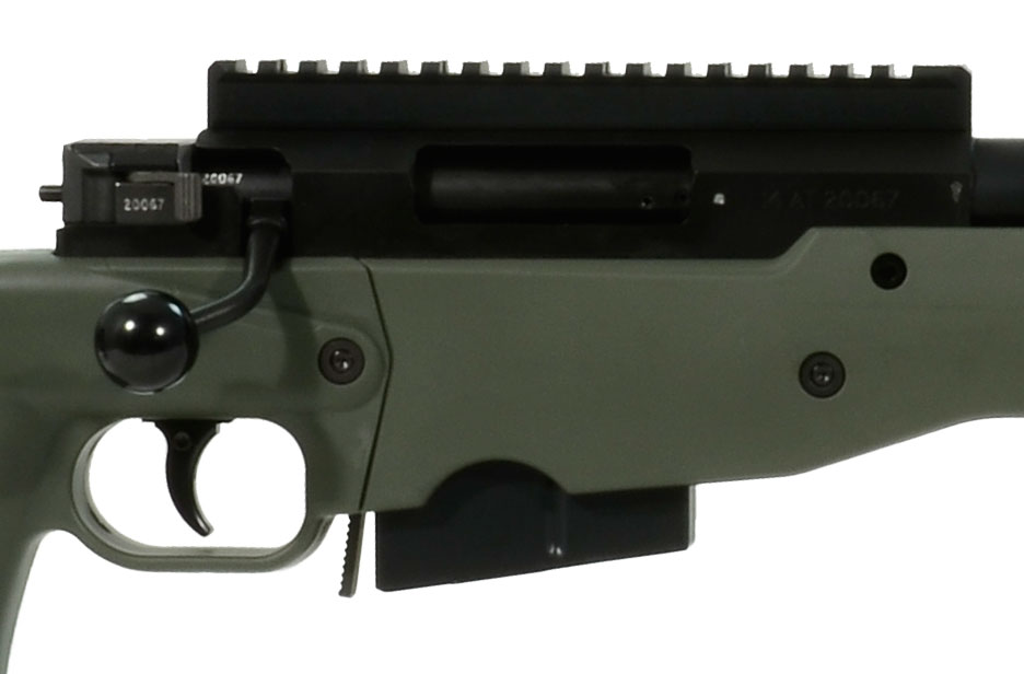 - 20mm diameter close-fitting bolt with 6 locking lugs and AI one-piece extractor. To minimize hand movement, the short 60° throw bolt is positioned close to the stock, and just above the trigger.