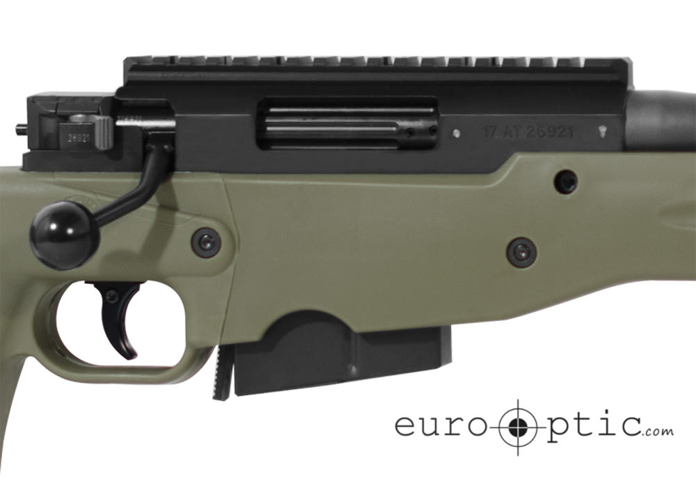 - 20mm diameter close-fitting bolt with 6 locking lugs and AI one-piece extractor. To minimize hand movement, the short 60° throw bolt is positioned close to the stock, and just above the trigger.