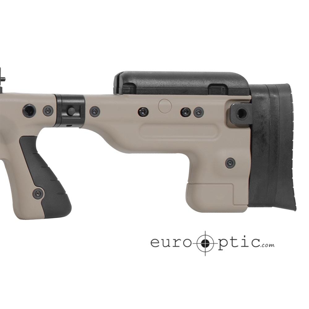 This Accuracy International AT rifle comes with a folding pale brown stock, 24 inch barrel with a standard break and small firing pin. It is chambered around the .308 Win round and has a crisp adjustable trigger between 3.3lbs and 4.4lbs.