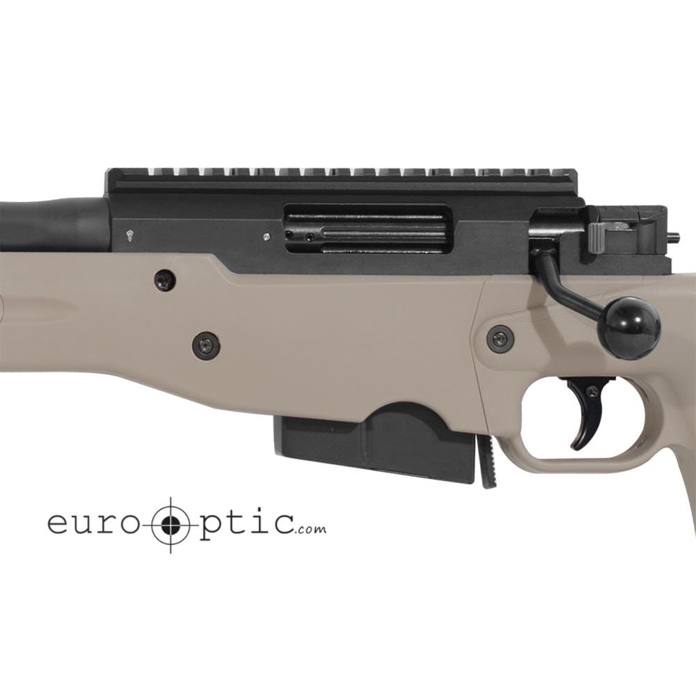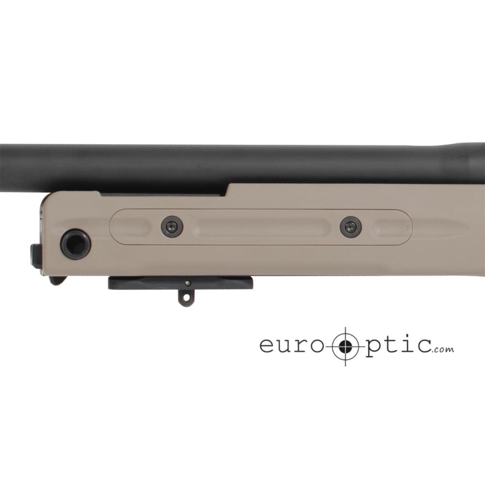 - 20mm diameter close-fitting bolt with 6 locking lugs and AI one-piece extractor. To minimize hand movement, the short 60° throw bolt is positioned close to the stock, and just above the trigger.