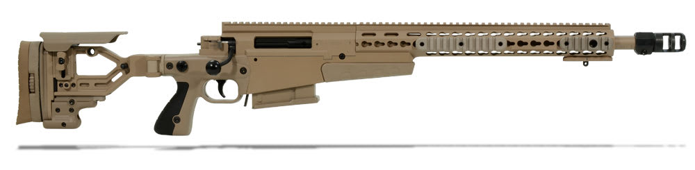 This version of the Accuracy International AXMC is a .300 Winchester Magnum with a 20" threaded barrel with muzzle brake and features a pale brown stock.
