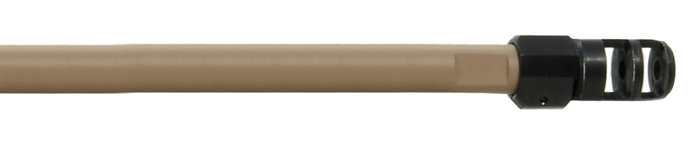 This version of the Accuracy International AXMC is a .308 Winchester with a 24" threaded barrel with muzzle brake and features a pale brown stock.
