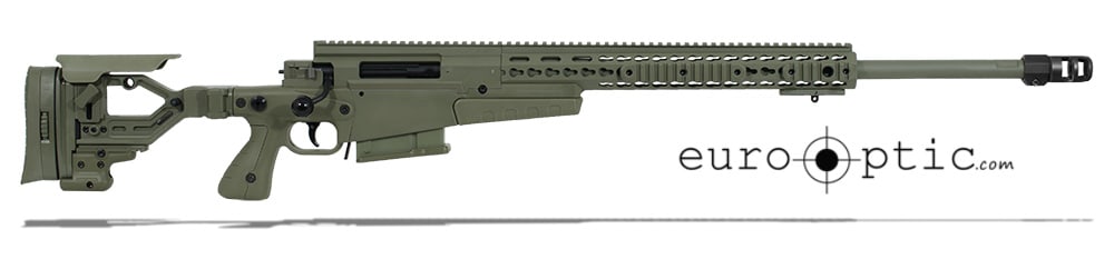 This particular Accuracy International AXMC is a .300 Win Magnum with a 26" threaded barrel with muzzle break and features a green stock.