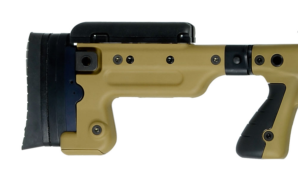 This Accuracy International AX308 rifle includes a flat dark earth finish, match 24" barrel, and adjustable butt stock. The AX308 also offers a 6 lug 60° bolt with leaf spring exactor, 3 position safety, two-stage trigger, folding stock with adjustable cheek piece, KeySlot accessory mounting system, configurable pistol grip, and detachable 10-round double stack magazines.