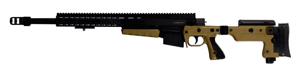 The 20 moa taper Picatinny rail is pinned and screwed to the action providing a standard interface for many optical systems. The match grade barrel is threaded deep into the action with a large diameter thread. The magazine is surface toughened, and finished with a multi-part anti-corrosive, anti-friction coating, the compact 10-round double row, military grade steel magazine combined with the revised chassis design makes loading faster and more positive without lifting the rifle.