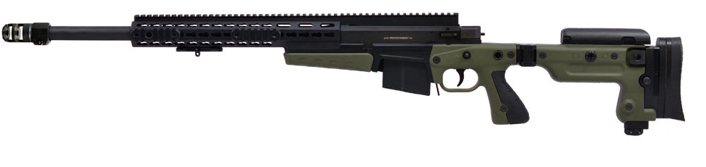 This Accuracy International AX308 with a green finish, match grade 20" barrel, butt spike, quick adjust, and muzzle brake offers a proofed steel action, quickloc quick release barrel system, 6 lug 60° bolt with leaf spring extractor, 3 position safety, two-stage trigger, adjustable cheek piece, KeySlot™ accessory mounting system, configurable pistol grip, side cut away magazine, and detachable 10-round double stack magazines which can be loaded through the rifle ejection port.