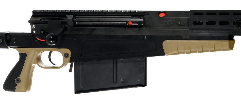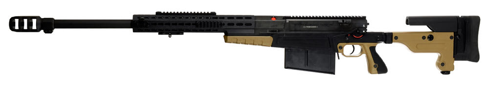 This Accuracy International AX50 is designed for military use as an anti-material weapon system. It features a proprietary, flat bottomed, high grade steel action that is bolted to a full length aluminum chassis. A full width recoil lug totally eliminates movement, ensuring this Accuracy International .50BMG will maintain zero under absolutely any conditions. Two pressure release points minimize blowback in the event of a cartridge failure ensuring safety of the operator. The integral Picatinny Rail provides an internationally accepted interface for optical systems.The two stage trigger maintains a large sear engagement until the first stage is taken up, thereby reducing the risk of an accidental discharge and can easily be removed for cleaning by simply loosening two socket-head screw.
