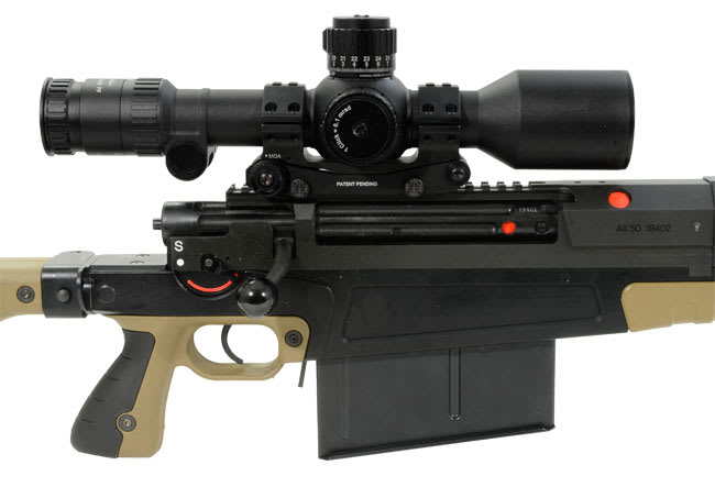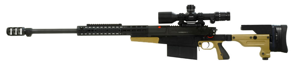 This Accuracy International 50 caliber is designed for military use as an anti material weapon system. It features a proprietary, flat bottomed, high grade steel action that is bolted to a full length aluminum chassis. A full width recoil lug totally eliminates movement, ensuring this Accuracy International 50 BMG will maintain zero under absolutely any conditions. Two pressure release points minimize blowback in the event of a cartridge failure ensuring safety of the operator.