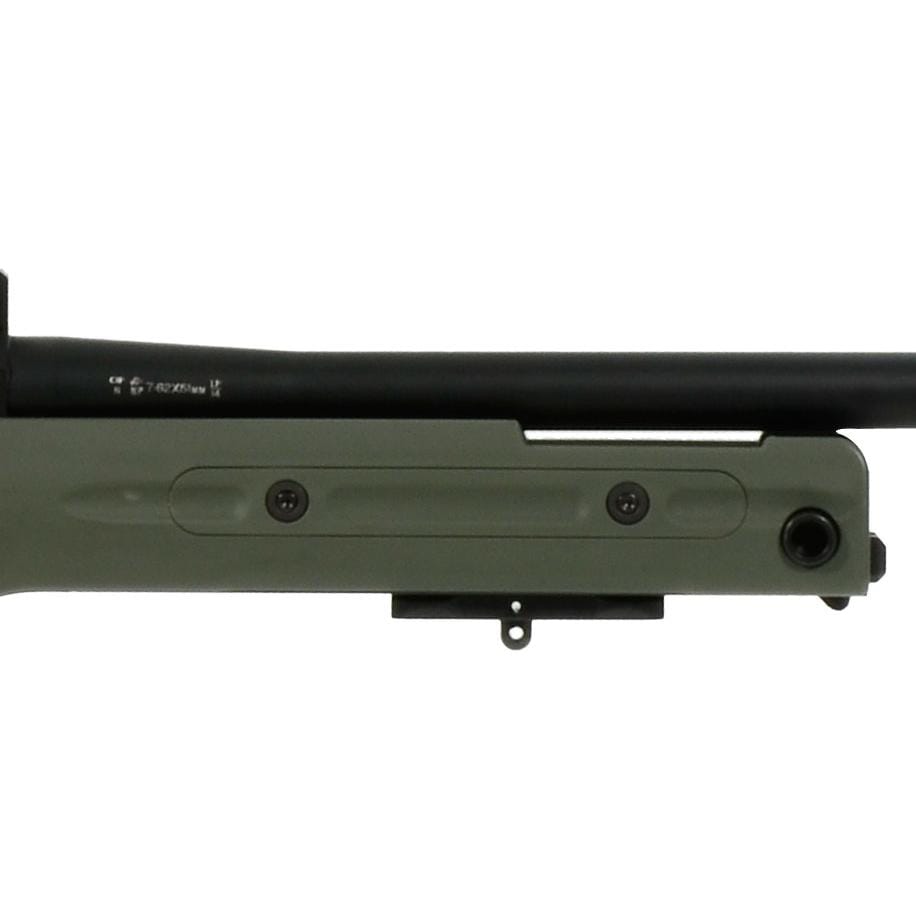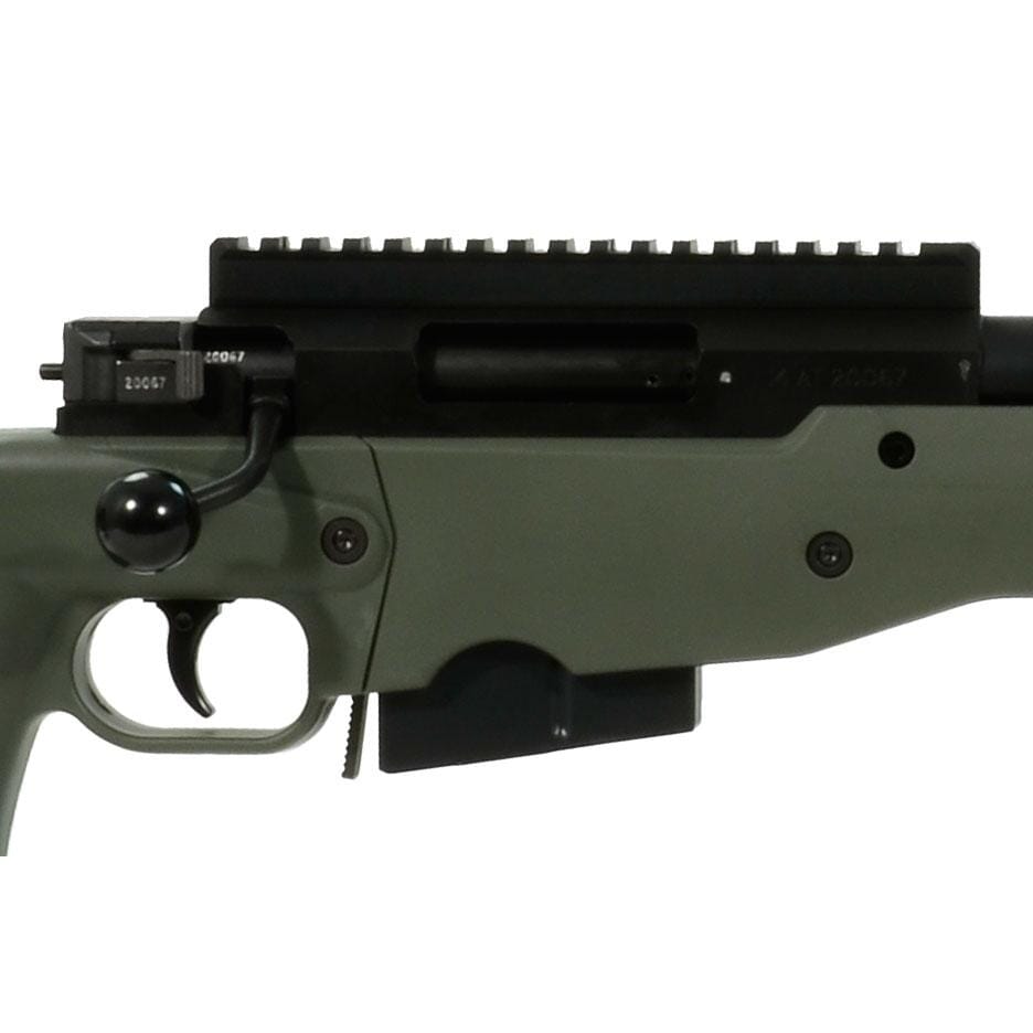- 20mm diameter close-fitting bolt with 6 locking lugs and AI one-piece extractor. To minimize hand movement, the short 60° throw bolt is positioned close to the stock, and just above the trigger.