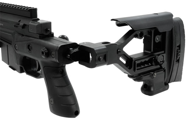 - Chassis folding stock reduces overall rifle length by 260mm (~10").