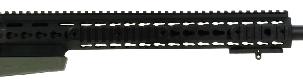 - QD flush cup sling attachments are located on the main chassis and removable/repositionable attachment points are located on rail sections attached to foreend.