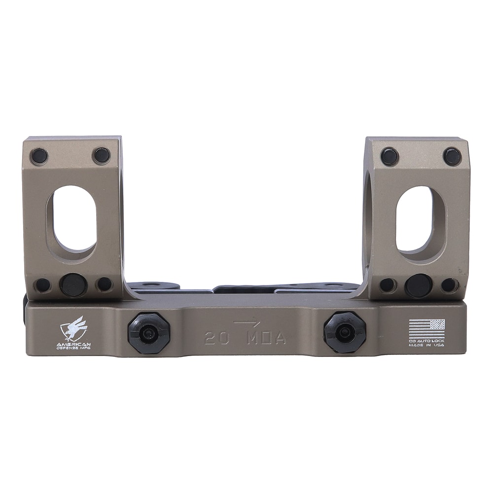 The American Defense AD-RECON-SL 20 MOA Scope Mount is perfect for mounting high-power optics on bolt-action rifles, M1A, M-14, or 10/22's. Featuring a 20 MOA cant for extended elevation adjustments, this low-profile mount is precision machined from 6061 T6 aluminum and finished in hard coat T3 Mil-Spec anodize. The patented QD Auto Lock™ Lever system ensures secure attachment and detachment without proprietary tools, accommodating both in-spec and out-of-spec rail systems. The 1" rings provide a stable and durable mounting solution.