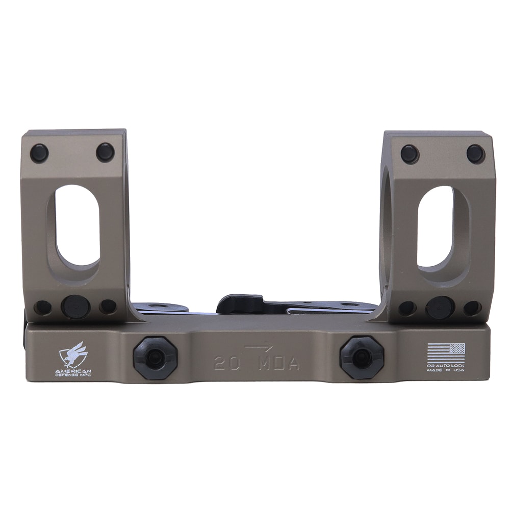 The American Defense AD-RECON-SL 20 MOA Scope Mount is perfect for mounting high-power optics on bolt-action rifles, M1A, M-14, or 10/22's. Featuring a 20 MOA cant for extended elevation adjustments, this low-profile mount is precision machined from 6061 T6 aluminum and finished in hard coat T3 Mil-Spec anodize. The patented QD Auto Lock™ Lever system allows for easy attachment and detachment without proprietary tools, accommodating both in-spec and out-of-spec rail systems. The 30mm rings provide a stable and durable mounting solution.