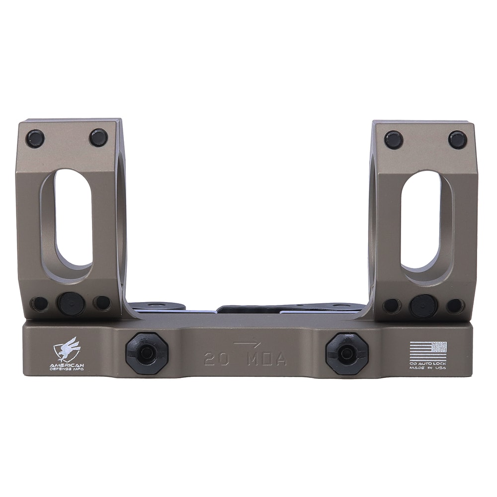 The American Defense AD-RECON-SL 20 MOA Scope Mount is designed for mounting high-power optics on bolt-action rifles, M1A, M-14, or 10/22's. Featuring a 20 MOA cant for extended elevation adjustments, this low-profile mount is precision machined from 6061 T6 aluminum and finished in hard coat T3 Mil-Spec anodize. The patented QD Auto Lock™ Lever system ensures secure attachment and detachment without proprietary tools, accommodating both in-spec and out-of-spec rail systems. The 34mm rings provide a stable and durable mounting solution.
