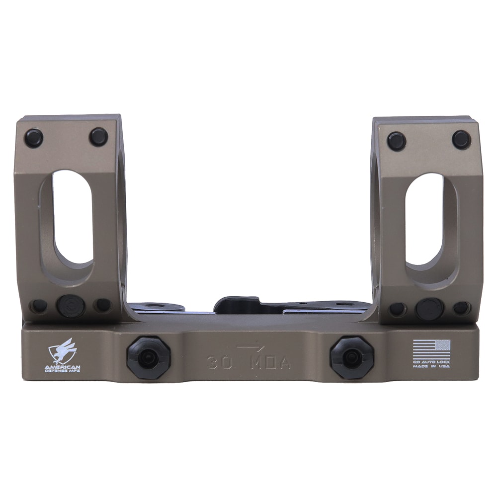 The American Defense AD-RECON-SL 30 MOA Scope Mount is designed for mounting high-power optics on bolt-action rifles, M1A, M-14, or 10/22's. Featuring a 30 MOA cant for extended elevation adjustments, this low-profile mount is precision machined from 6061 T6 aluminum and finished in hard coat T3 Mil-Spec anodize. The patented QD Auto Lock™ Lever system allows for easy attachment and detachment without proprietary tools, accommodating both in-spec and out-of-spec rail systems. The 34mm rings provide a stable and durable mounting solution.