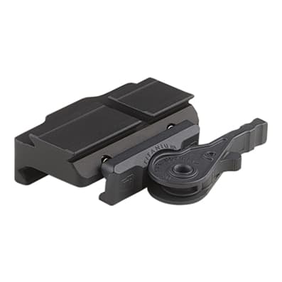 The American Defense QD Mount with Standard Lever for Aimpoint ACRO is engineered to position the Aimpoint ACRO micro red dot sight in an absolute co-witness height on your firearm. Constructed from 6061 T6 aluminum and finished in hard coat T3 Mil-Spec anodize, this mount offers long-lasting durability and a secure fit. The patented QD Auto Lock™ Lever system allows for tool-free adjustments and accommodates both in-spec and out-of-spec rail systems. Ideal for AR pistols and other platforms, this mount provides a stable and reliable solution for your red dot sight needs.