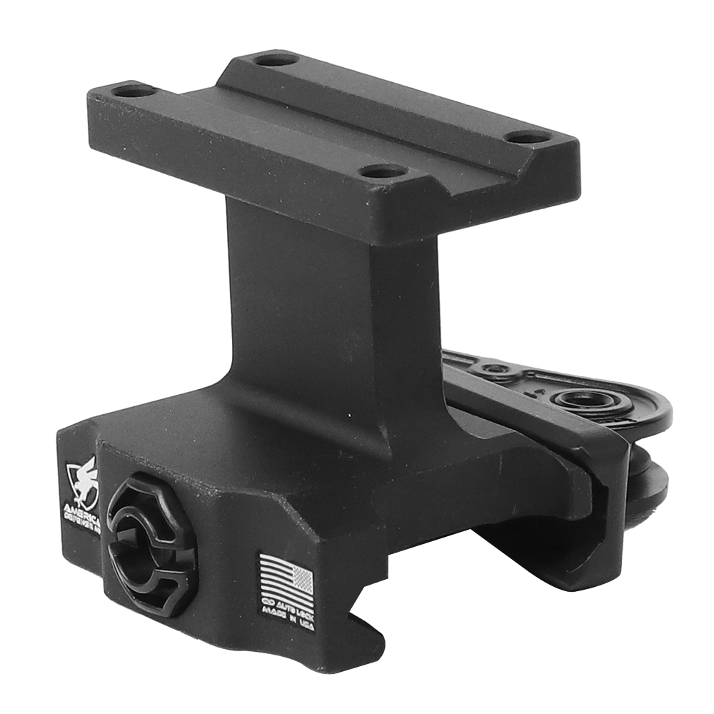 The American Defense QD Mount with Titanium Lever for Trijicon MRO is a robust and versatile mounting solution designed for the Trijicon Miniature Rifle Optic. Crafted from 6061 T6 aluminum and finished with a hard coat T3 Mil-Spec anodize, this mount offers exceptional durability and a sleek appearance. The patented QD Auto Lock™ Lever system, featuring a titanium lever, ensures a secure fit on both in-spec and out-of-spec rail systems, providing lower 1/3 co-witness optic height. Perfect for AR pistols and other lightweight platforms, this mount guarantees reliable performance and easy adjustments.