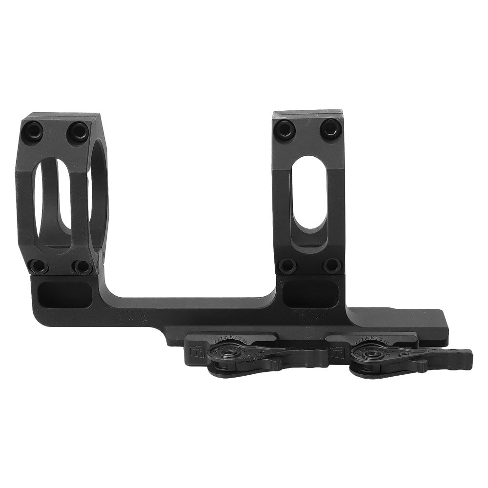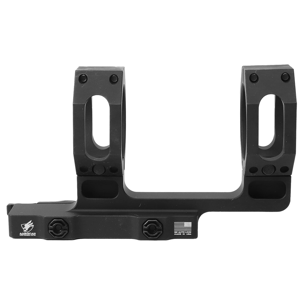 The American Defense Manufacturing AD-RECON-H cantilever riflescope mount is the tallest available scope mounting solution offered by ADM. The AD-RECON-H is designed to be used in conjunction with 12 o'clock mounted laser sighting systems with little or no optical interference. The AD-RECON-H is also ideal for riflescopes with oversized objective diameters or rifles that require a higher cheek weld. The AD-RECON-H cantilever mount is machined from 6061 T1 aluminum and finished with T3 anodized hard coat. The patented QD Auto Lock Lever System is now made from titanium for maximum durability and weight reduction.