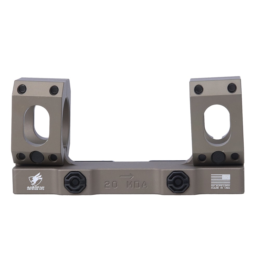 The American Defense Manufacturing AD-RECON-SL is designed for mounting large riflescopes onto AR and tactical bolt action rifles. The AD-RECON-SL is a straight up style scope mount with no built in eye-relief and is the lowest scope mount offering from American Defense Manufacturing. The AD-RECON-SL mount is machined from 6061 T1 aluminum and finished with T3 anodized hard coat. The patented QD Auto Lock Lever System is now made from titanium for maximum durability and weight reduction.