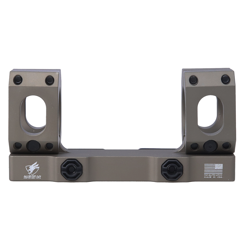 The American Defense Manufacturing AD-RECON-SL is designed for mounting large riflescopes onto AR and tactical bolt action rifles. The AD-RECON-SL is a straight up style scope mount with no built in eye-relief and is the lowest scope mount offering from American Defense Manufacturing. The AD-RECON-SL mount is machined from 6061 T1 aluminum and finished with T3 anodized hard coat. The patented QD Auto Lock Lever System is now made from titanium for maximum durability and weight reduction.