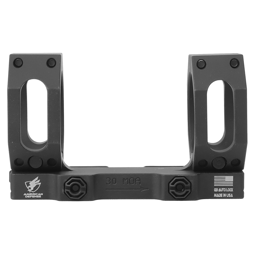 The American Defense Manufacturing AD-RECON-SL is designed for mounting large riflescopes onto AR and tactical bolt action rifles. The AD-RECON-SL is a straight up style scope mount with no built in eye-relief and is the lowest scope mount offering from American Defense Manufacturing. The AD-RECON-SL mount is machined from 6061 T1 aluminum and finished with T3 anodized hard coat. The patented QD Auto Lock Lever System is now made from titanium for maximum durability and weight reduction.