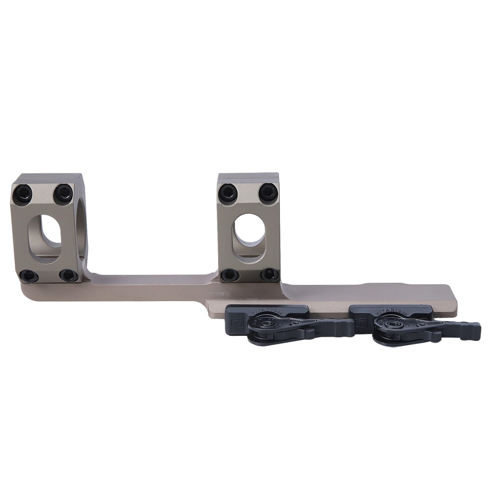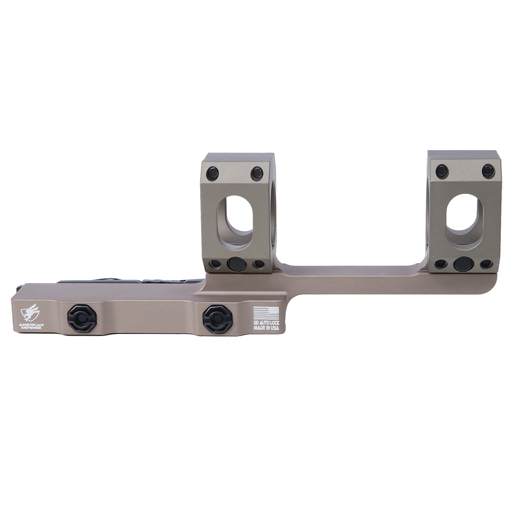 The American Defense Manufacturing AD-RECON-X riflescope cantilever mount offers the highest amount of built-in eye relief of all ADM’s scope mounts. The extended eye-relief allows the mounting of long range optics on a flattop AR platform rifle. The AD-RECON-X cantilever mount is machined from 6061 T1 aluminum and finished with T3 anodized hard coat. The patented QD Auto Lock Lever System is now made from titanium for maximum durability and weight reduction.