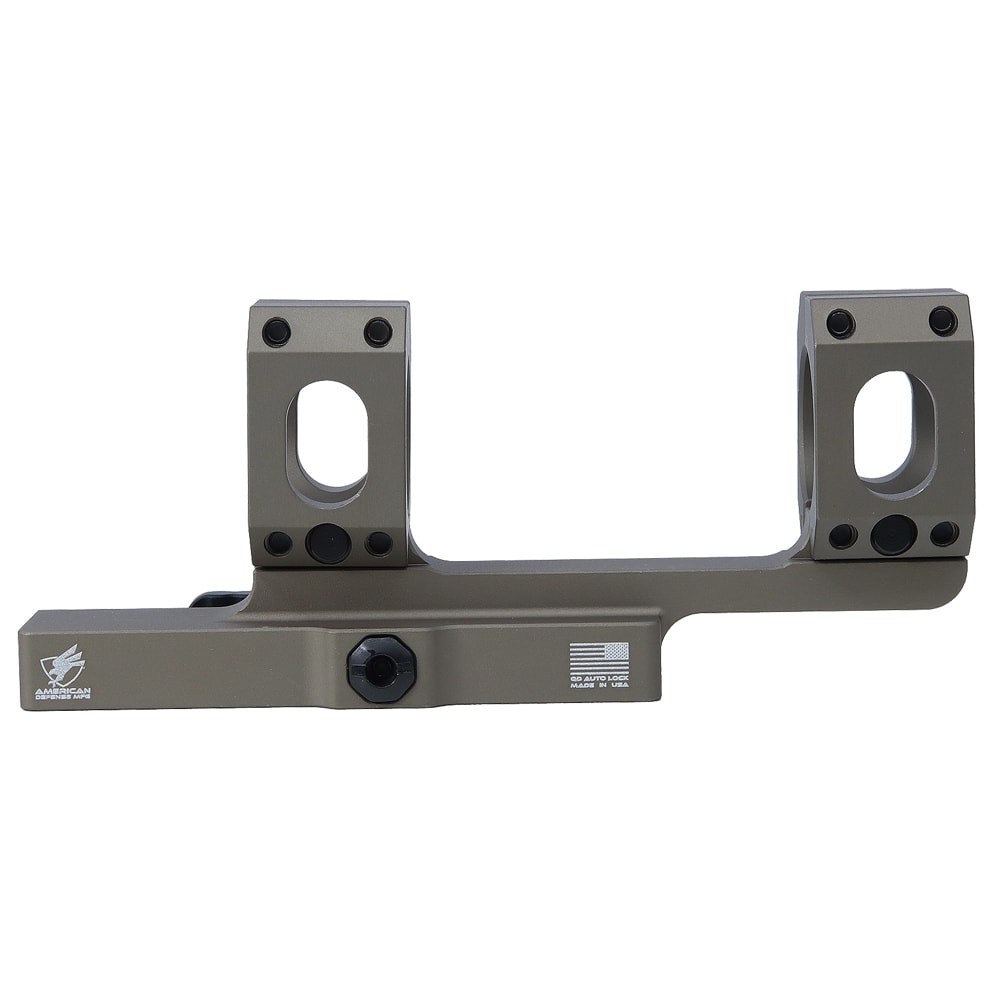 The American Defense Manufacturing AD-SCOUT Cantilever scope mount is designed for mounting full sized optics on a short rail. The AD-SCOUT only features one of the patented QD Auto Lock Titanium Lever to accommodate a shorter rail. The AD-SCOUT Cantilever scope mount is machined from 6061 T6 aluminum and then hard coated anodized for a ultra-durable finish.