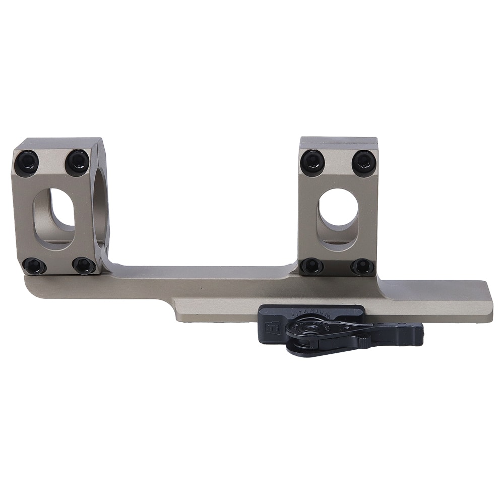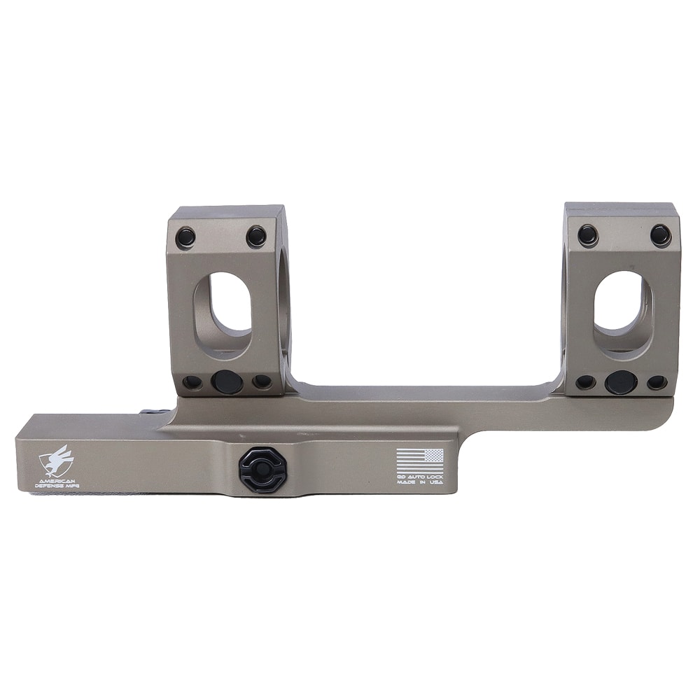 The American Defense Manufacturing AD-SCOUT Cantilever scope mount is designed for mounting full sized optics on a short rail. The AD-SCOUT only features one of the patented QD Auto Lock Titanium Lever to accommodate a shorter rail. The AD-SCOUT Cantilever scope mount is machined from 6061 T6 aluminum and then hard coated anodized for a ultra-durable finish.