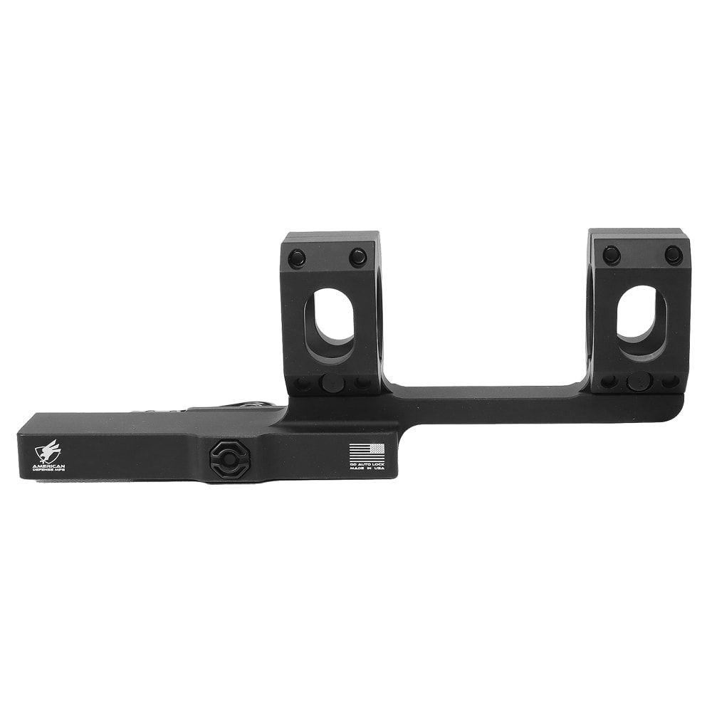 The American Defense Manufacturing AD-SCOUT-X extended cantilever scope mount is designed for mounting full sized optics on a short rail. The AD-SCOUT-X only features one of the patented QD Auto Lock Titanium Lever to accommodate a shorter rail. The AD-SCOUT-X scope mount is machined from 6061 T6 aluminum and then hard coated anodized for a ultra-durable finish.