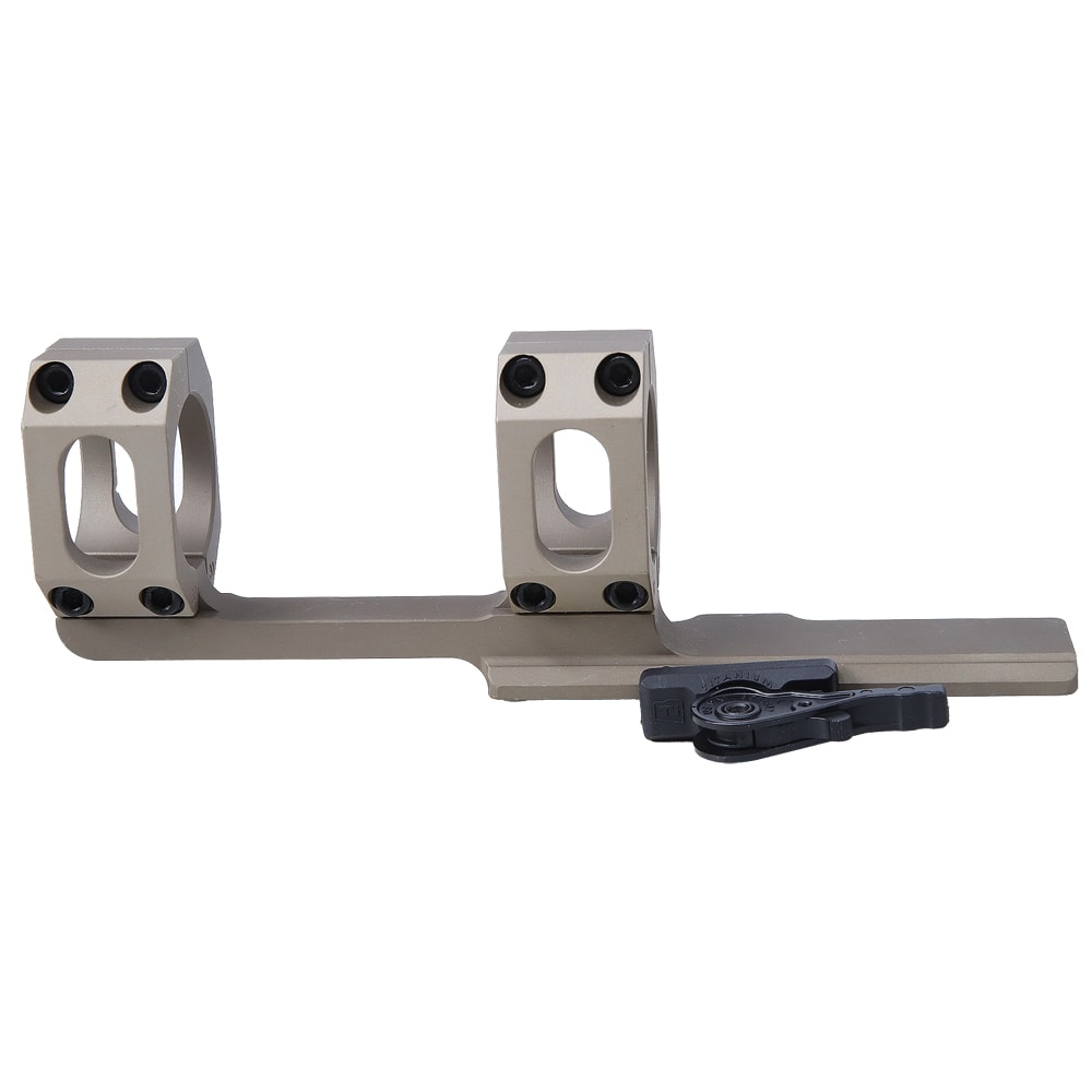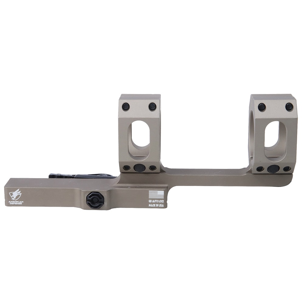 The American Defense Manufacturing AD-SCOUT-X extended cantilever scope mount is designed for mounting full sized optics on a short rail. The AD-SCOUT-X only features one of the patented QD Auto Lock Titanium Lever to accommodate a shorter rail. The AD-SCOUT-X scope mount is machined from 6061 T6 aluminum and then hard coated anodized for a ultra-durable finish.