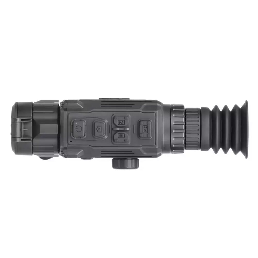 The AMG Rattler-V2 19-256 Thermal Riflescope is an enhanced version of the renowned Rattler TS19-256, boasting dramatically improved battery life, more reticle options, superior detection abilities, and optimized controls/interface. Measuring in at 8.5" x 2.7" x 2.6" and weighing at just over a pound, this compact thermal optic is perfect for close to mid-range night hunts thanks to its 2.5x base magnification and wide 9.3° x 6.9° (49 feet @ 100 yards) field of view. Compared to its predecessor, the Rattler-V2's refresh rate has been upgraded from 25hz to 50hz to ensure smooth scanning and minimal lag. The 2.5x magnification, wide FOV, and lightening fast refresh rate allows for extensive area coverage during scanning either mounted to a firearm or as a handheld monocular. The heart of the Rattler-V2 is a 12μm VOx Uncooled Focal Plane Array detector with sub-35mK sensitivity paired with a 19mm Germanium lens – this allows the Rattler-V2 to detect a human sized heat signature from up to 950 yards away. Heat signatures are projected onto a 0.39" OLED display and are viewable in 4 distinct color palettes – back hot, white hot, red hot, and fusion. In addition to multiple color palette options, the Rattler-V2 also offers 10 reticle options to choose from as well as 25 zeroing profiles, allowing the Rattler-V2 to be used with multiple firearms and cartridges. Switching between the various color palettes, reticles, and zeroing profile is easy via an intuitive user interface.