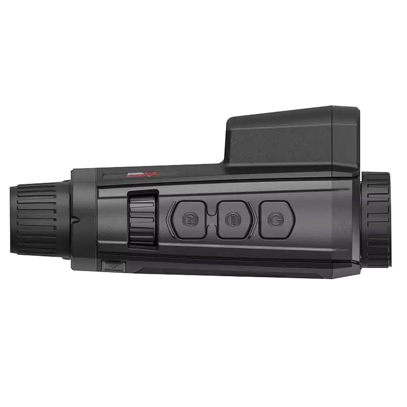Conquer the night with the Fuzion LRF TM25-384 Handheld Thermal & Optical Bi-spectrum Monocular by AGM Global Vision. It comes equipped with a 12μm high sensitivity thermal detector and ultra-low light optical detector. This combination of visible light amplification and heat detection allows the user to quickly detect targets in extreme environments including rain, snow, fog, and smoke. Targets are displayed on a 1024x768 OLED monitor, and are viewable in six palettes: white hot, black hot, red hot, fusion, optical, and image fusion. White hot displays sources of heat as white silhouettes over a predominantly black background, while black hot shows sources of heat as black silhouettes over a predominantly white background. Red hot displays heat signatures as red: the higher the temperature, the redder the image. Fusion uses multiple colors to display temperature variations – white shows the hottest part of the image and purple shows the coolest, with yellow, red, and pink in between. The optical palette displays the image of the optical channel, and the Image Fusion combines the optical image with the thermal image and displays it with a clear edge. While using the Image Fusion palette, the user can adjust the fusion level according to the actual observation distance for optimal effect. The Fuzion TM25-384 is also outfitted with Recognition and Jungle scene modes to better adapt to changing environmental conditions. Recognition mode improves the image by creating a more distinct edge around the object, while jungle highlights smaller objects. Other features of the Fuzion TM25-384 include onboard image and video recording with 16GB of internal memory, and an integrated laser range finder for gauging distance to target.