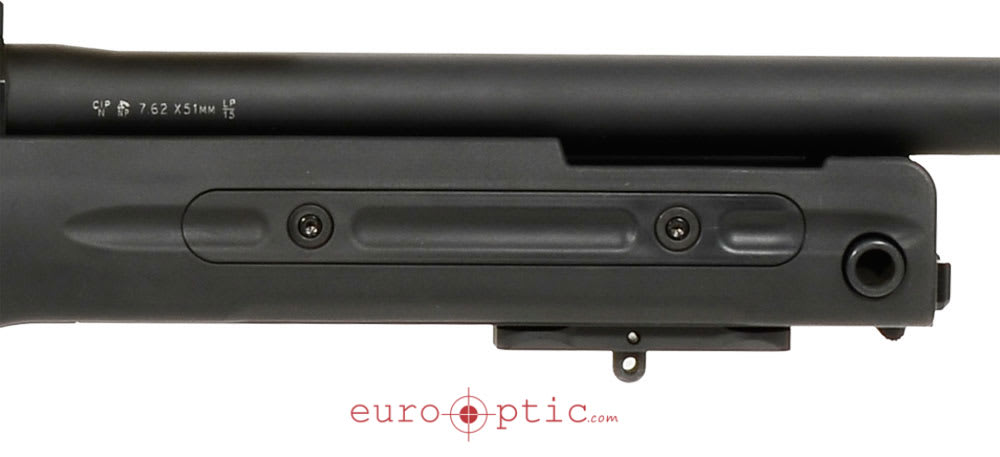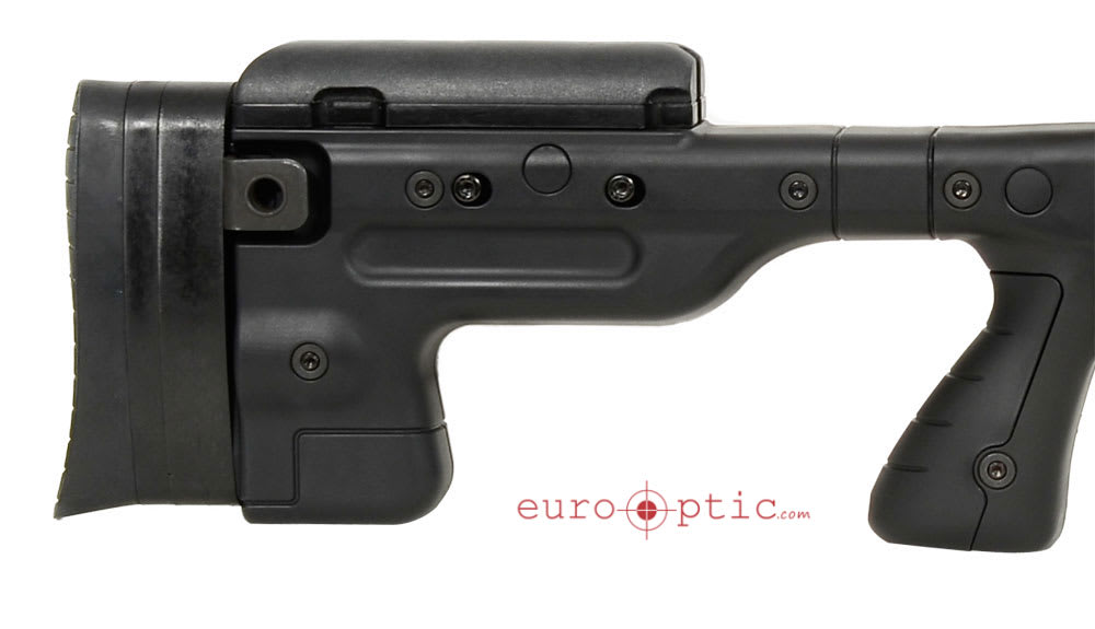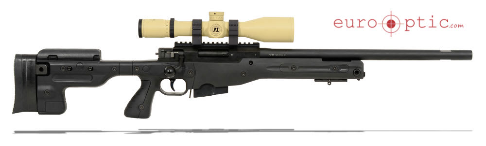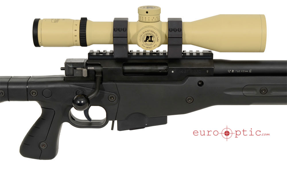 This .308 Win Accuracy International AT rifle has a black fixed stock, 20" non-threaded barrel, adjustable cheekpiece, sling points, pistol grip, 3-position safety, two-stage trigger, flat-bottomed action, 20mm diameter close fitting bolt with six locking lugs, one-piece extractor, and corrosion resistant magazine. Includes Operational Products Mounts and an AI Engraved Schmidt Bender PMII 3-12x50 scope which features parallax compensation for adjustment from 50 meters to infinity, .2 mrad adjustments, and first focal plane reticle for distance evaluation in all magnifications.