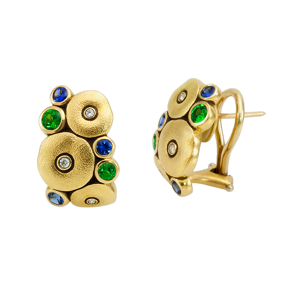 Alex Sepkus 18K Diamond Tsavorite Sapphire Orchard Earrings E-100