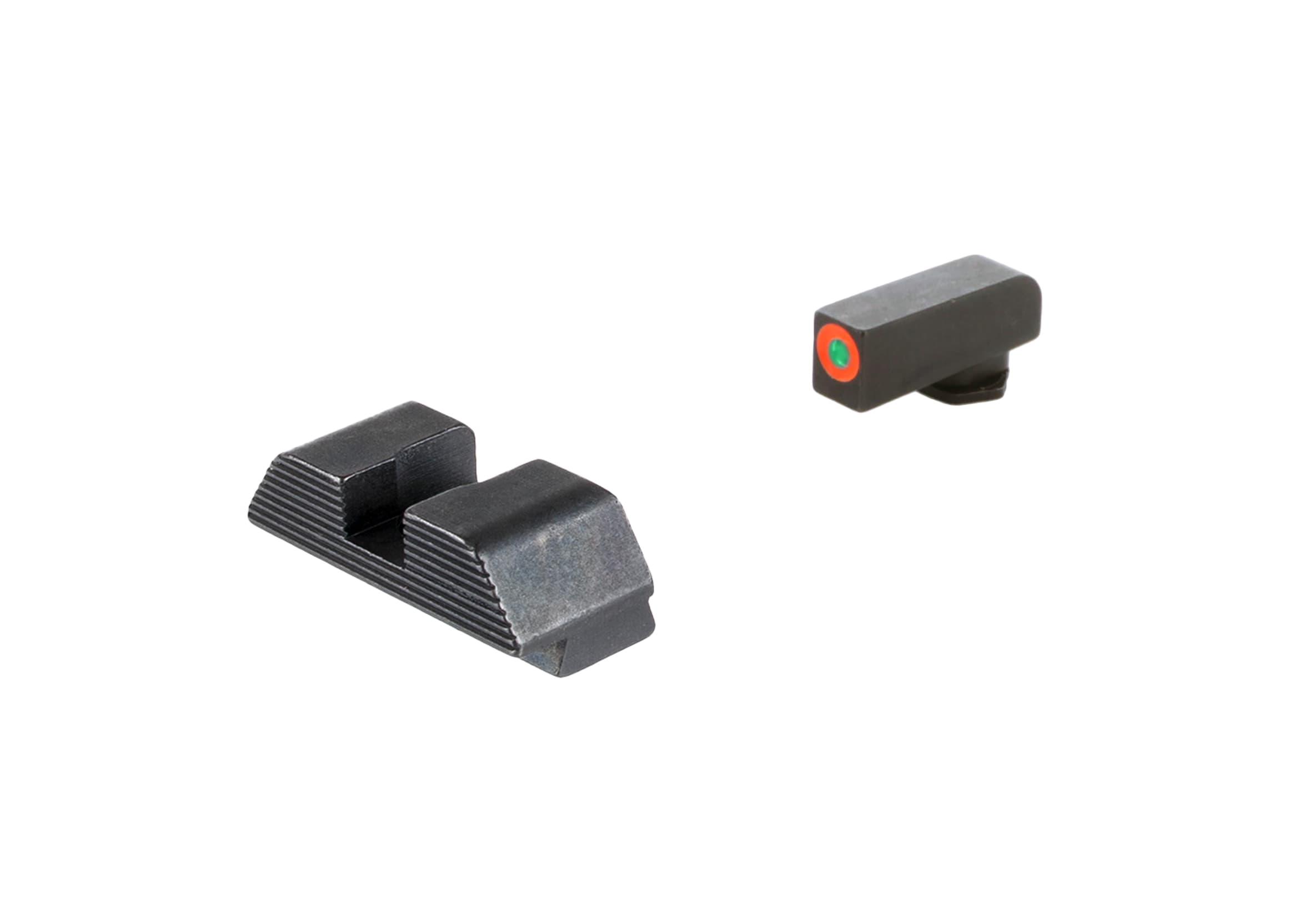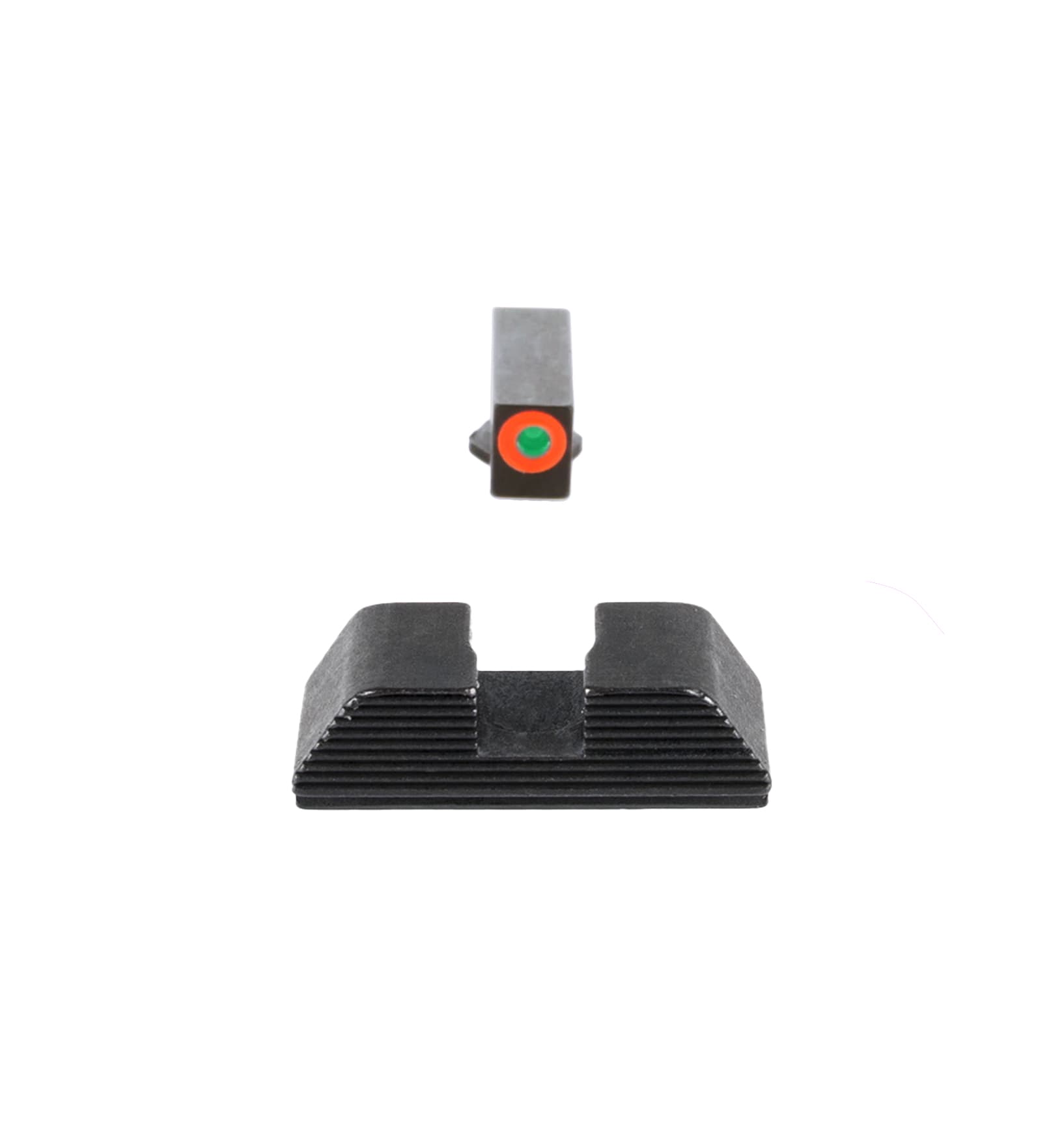 Ameriglo’s Protector series are an excellent choice for concealed carry and personal defense applications, and offer faster front sight acquisition. The front sight is composed of a tritium ProGlo lamp (with either a LumiGreen or Orange outline), and the rear sight features serrated rear notch which reduces glare and offers assistance for one-handed slide manipulations. This configuration allows the shooter to concentrate on the front sight blade for faster target engagement.