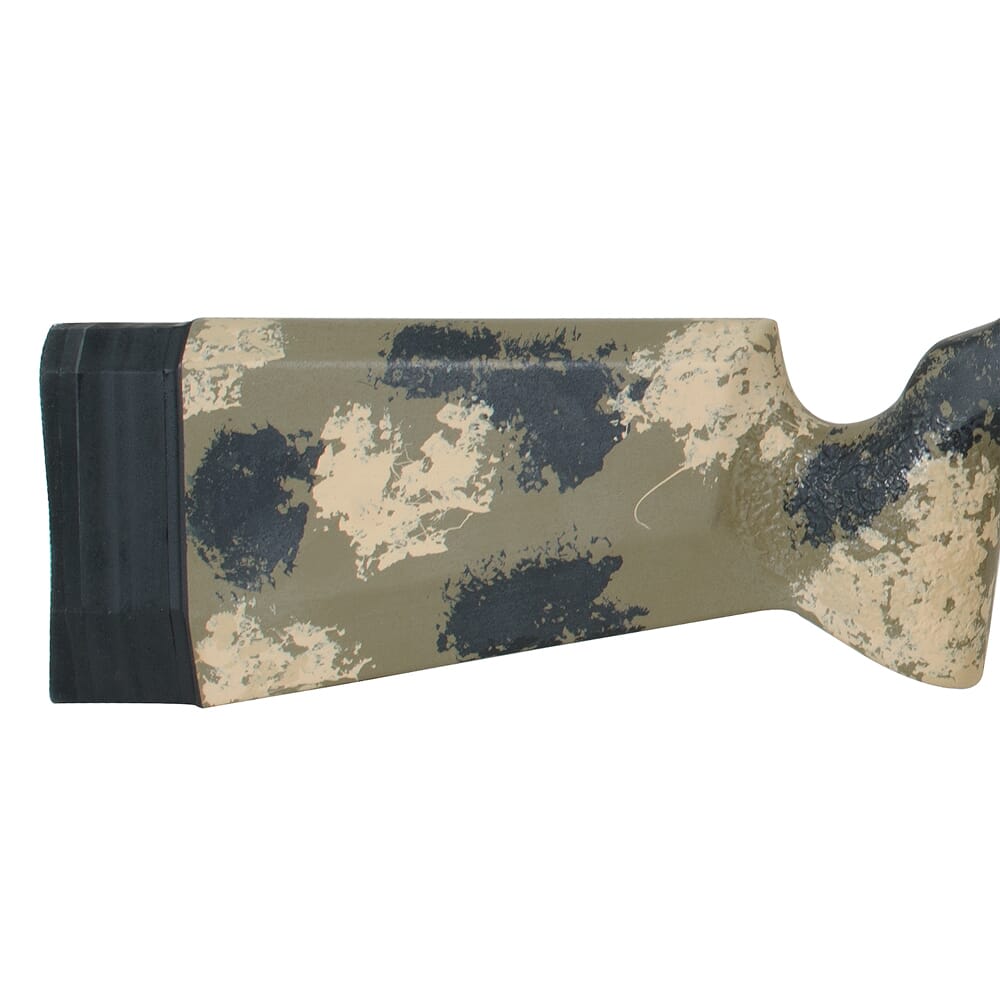 This custom edition Anschutz 1517 AV T6M has 64 Bolt repeater action, a 5098 two-stage trigger and a blued finish. It comes in a Manners T6 synthetic stock that is 35% aircraft grade carbon fiber and 65% fiberglass in multiple layers. It has an adjustable butt-plate for length of pull and GAP molded camo pattern. This rifle has an 18" medium weight, threaded 1/2"x28 barrel that has a counter-bored crown. It is magazine fed with a 4 round capacity.