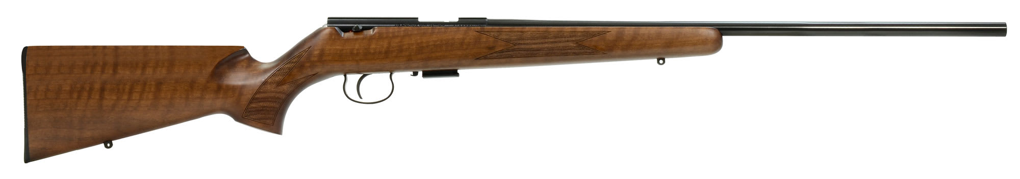 This left hand Anschutz 1517 D Classic .17 HMR rifle has a classic walnut stock, rubber butt plate, and a single stage trigger.