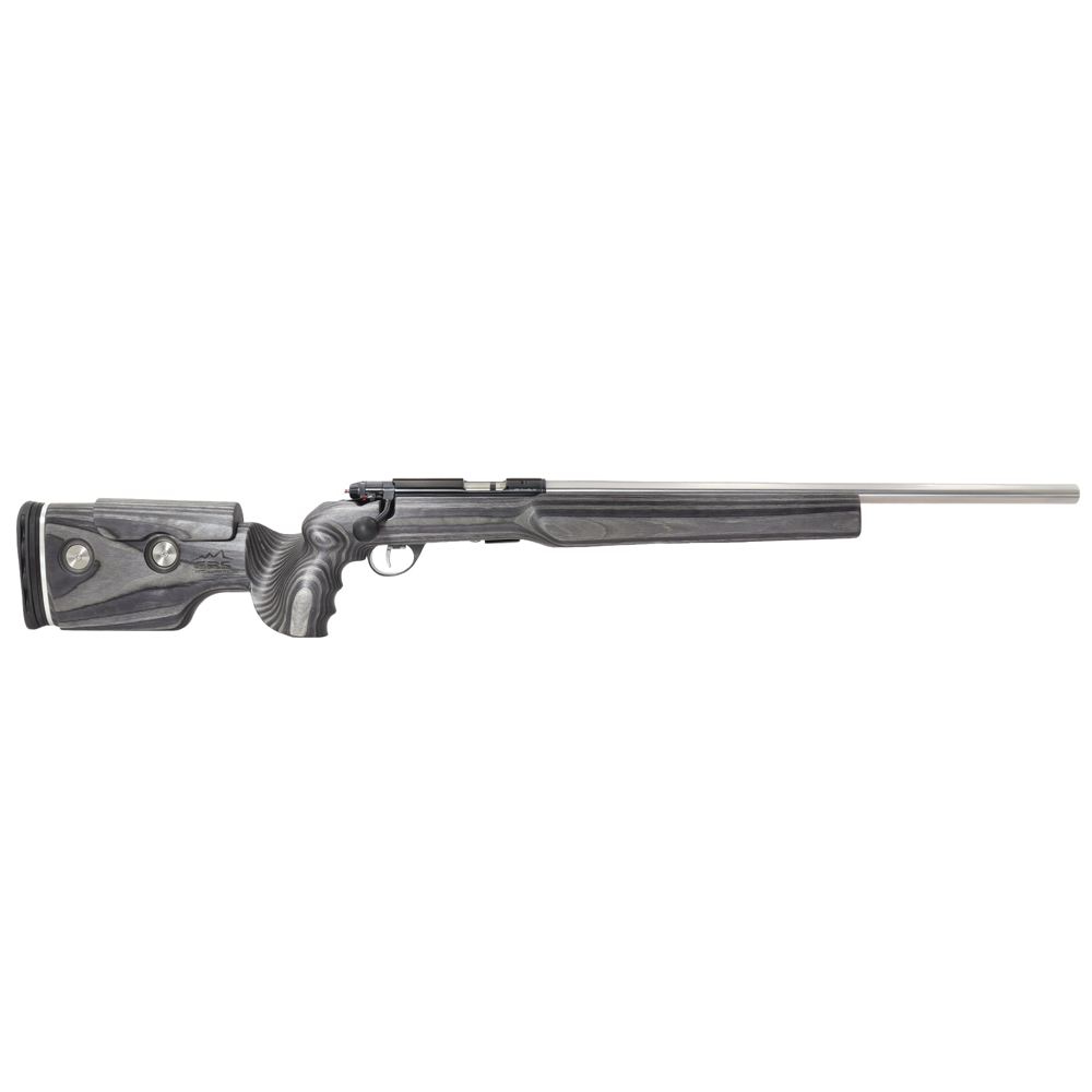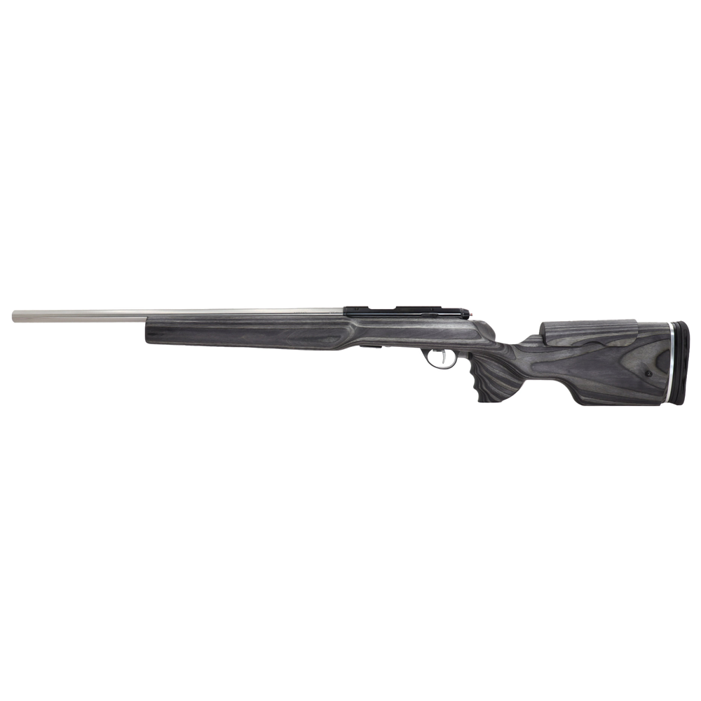 The 1710 HB 23" SS GRS Hybrid is a precision-oriented .22 LR repeater built on the Match 54 bolt-action platform and finished for serious target work. It pairs a stainless 23" heavy barrel with a blued receiver that accepts scope mounting via an 11 mm rail (drilled & tapped), and it rides in a comfortable, ergonomic GRS Hybrid stock. The new 5119 two-stage trigger is tuned for crisp, repeatable breaks - factory-adjusted to 6.35 oz (180 g) with an adjustable range up to 9.52 oz (270 g) - while a 5-round magazine and recessed target crown help deliver consistent accuracy. At just under 10 lbs (9 lb 14 oz) this rifle balances stable handling with precision performance.