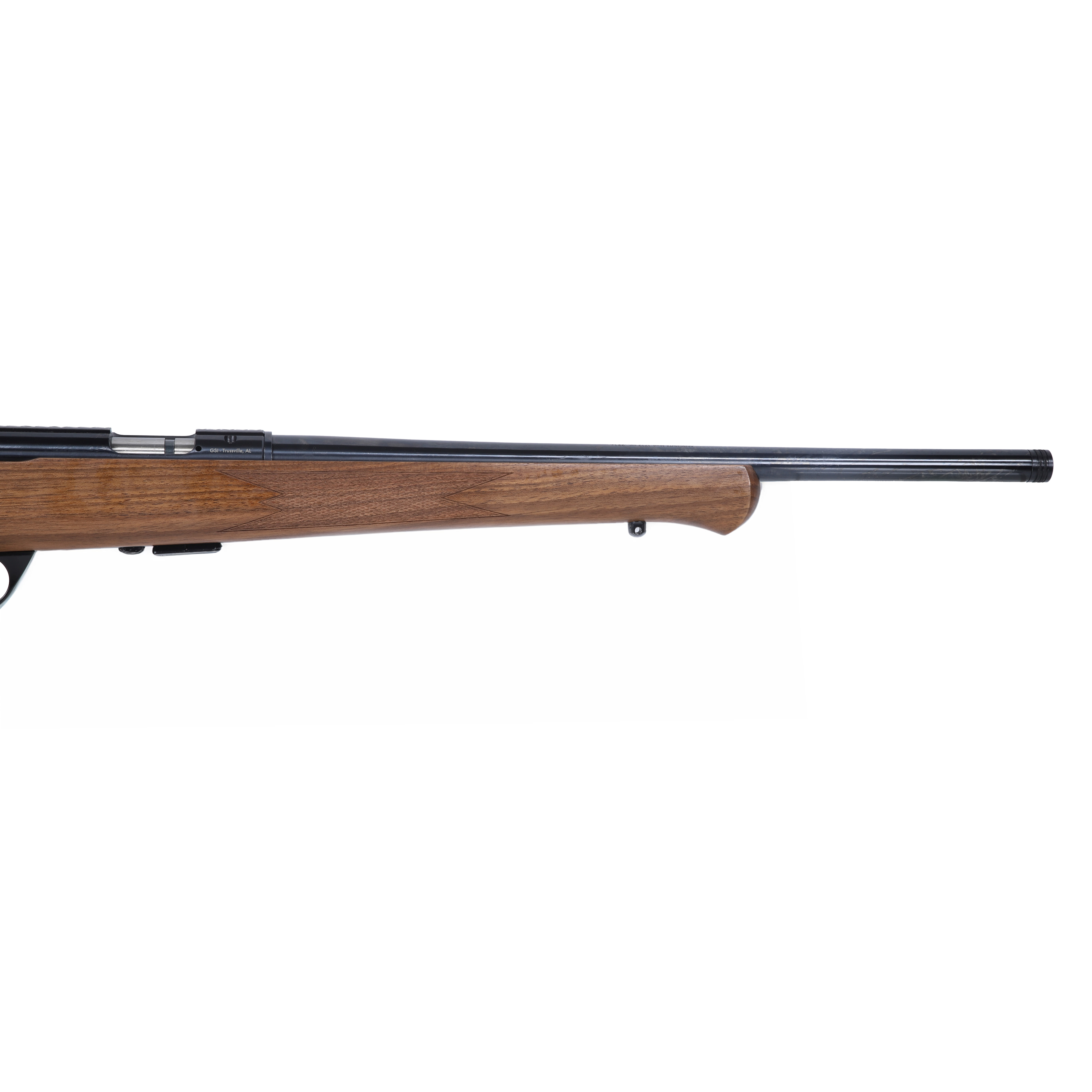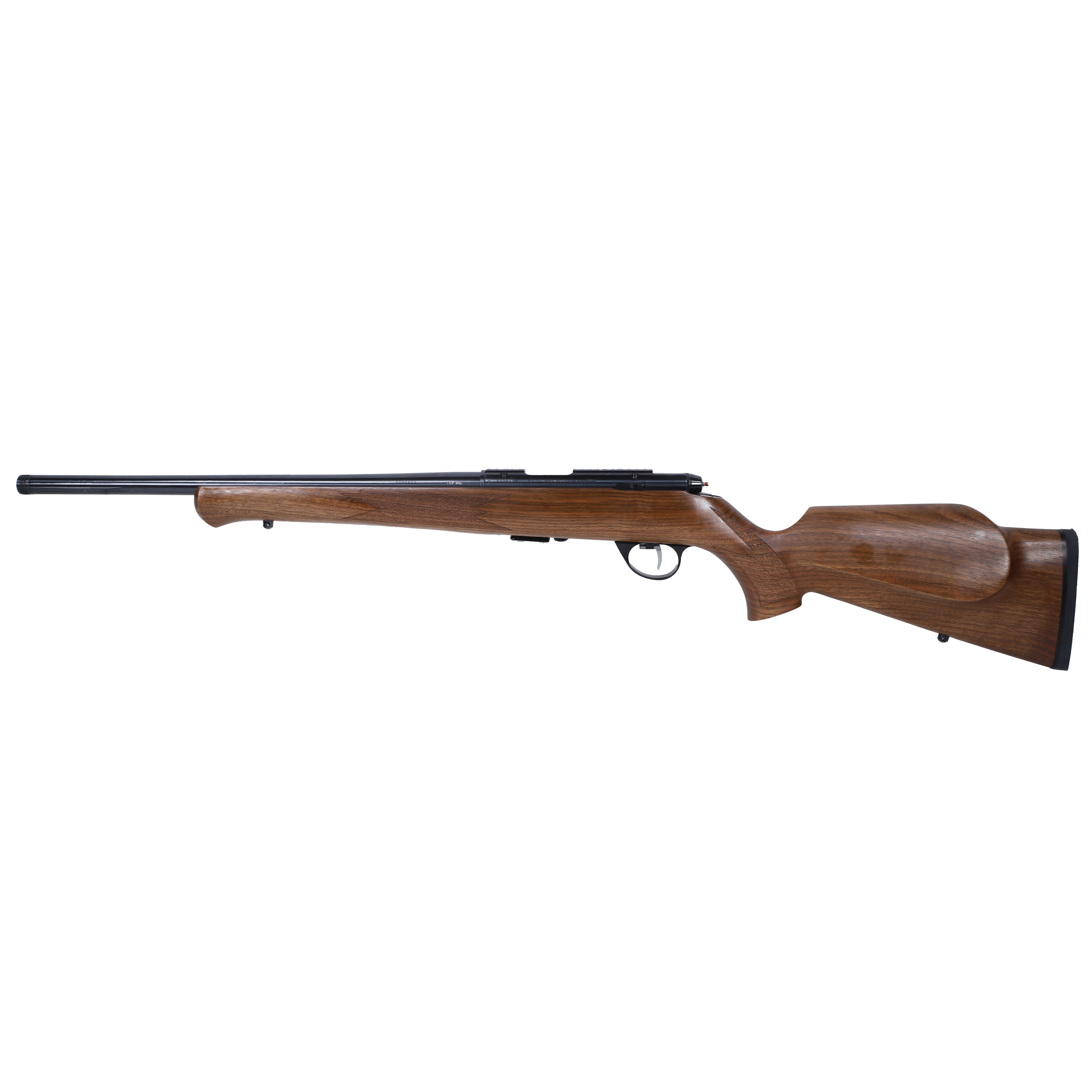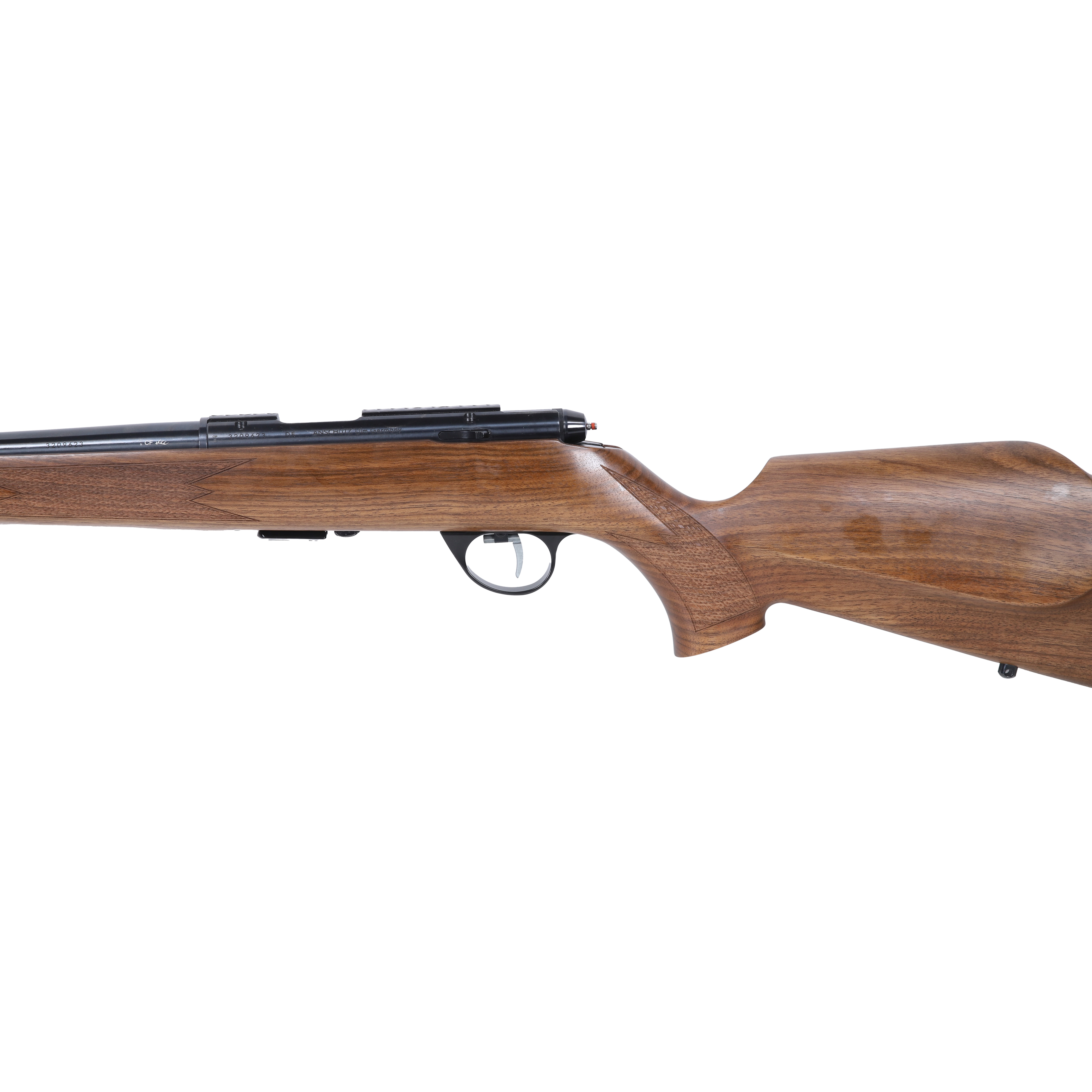 The Anschutz 1712 AV .22 LR Rifle is a precision instrument designed for shooters who demand accuracy and reliability. This rifle is chambered in .22 LR, a caliber renowned for its precision, making it an ideal choice for target shooting and small game hunting. The 18-inch barrel is meticulously crafted to enhance accuracy, ensuring that each shot is as precise as the last. The rifle's blued finish not only adds a touch of elegance but also provides exceptional durability and resistance to corrosion, ensuring it withstands the test of time and the elements. Equipped with a 5110 two-stage trigger, the Anschutz 1712 AV offers improved control, allowing shooters to achieve a crisp and clean trigger pull for each shot. The silhouette stock design is crafted for a comfortable shooting experience, making it easier to maintain accuracy over extended shooting sessions. This rifle is a perfect blend of precision, durability, and comfort, making it a valuable addition to any shooter's collection.