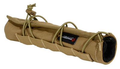 This suppressor cover fits Mac Bros MB762L 1.5" x 9.75" suppressors. The Armageddon Suppressor Cover significantly reduces and delays the effects of suppressor mirage, ensures no contact areas between nylon shell and hot suppressor, its highly-secure design stays in place, even during vigorous movements, and its adjustable shock cord ensures a custom fit. For use on bolt-action and semi-automatic precision rifles. Not to be used with fully-automatic weapons.
