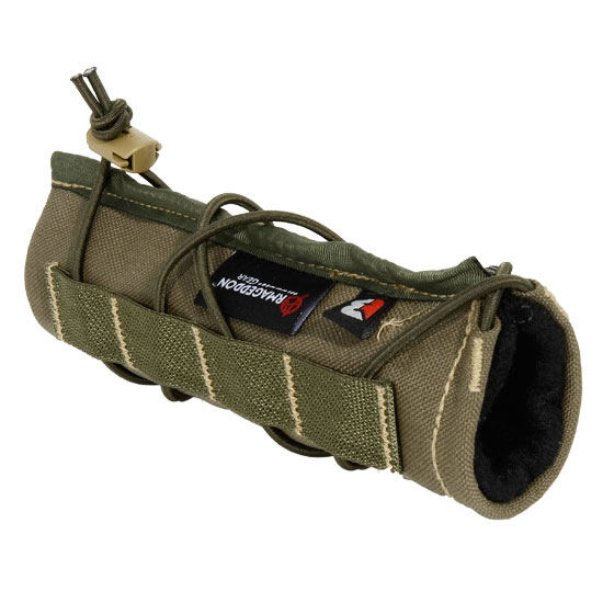 This ranger green suppressor cover fits TBAC 30BAS 1.5" x 7" suppressors. The Armageddon Suppressor Cover significantly reduces and delays the effects of suppressor mirage, ensures no contact areas between nylon shell and hot suppressor, its highly-secure design stays in place, even during vigorous movements, and its adjustable shock cord ensures a custom fit. For use on bolt-action and semi-automatic precision rifles. Not to be used with fully-automatic weapons.