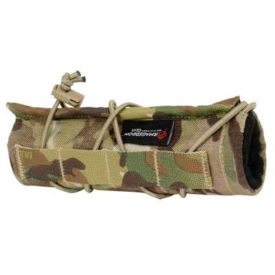 This multicam suppressor cover fits TBAC 30BAS 1.5" x 7" suppressors. The Armageddon Suppressor Cover significantly reduces and delays the effects of suppressor mirage, ensures no contact areas between nylon shell and hot suppressor, its highly-secure design stays in place, even during vigorous movements, and its adjustable shock cord ensures a custom fit. For use on bolt-action and semi-automatic precision rifles. Not to be used with fully-automatic weapons.