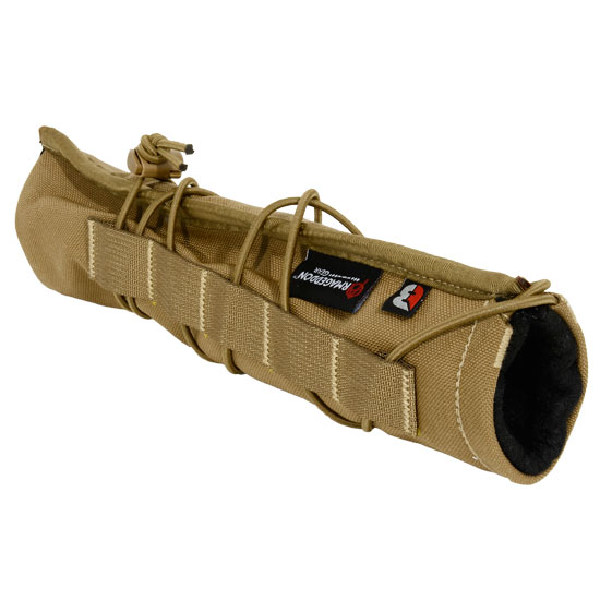 This coyote brown suppressor cover fits TBAC 338BA and all 1.8" x 10.25" suppressors. The Armageddon Suppressor Cover significantly reduces and delays the effects of suppressor mirage, ensures no contact areas between nylon shell and hot suppressor, its highly-secure design stays in place, even during vigorous movements, and its adjustable shock cord ensures a custom fit. For use on bolt-action and semi-automatic precision rifles. Not to be used with fully-automatic weapons.