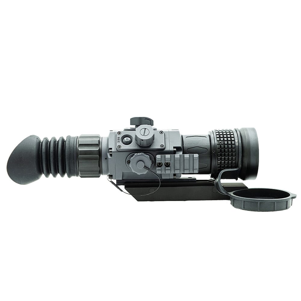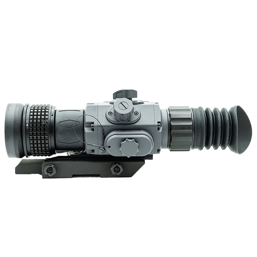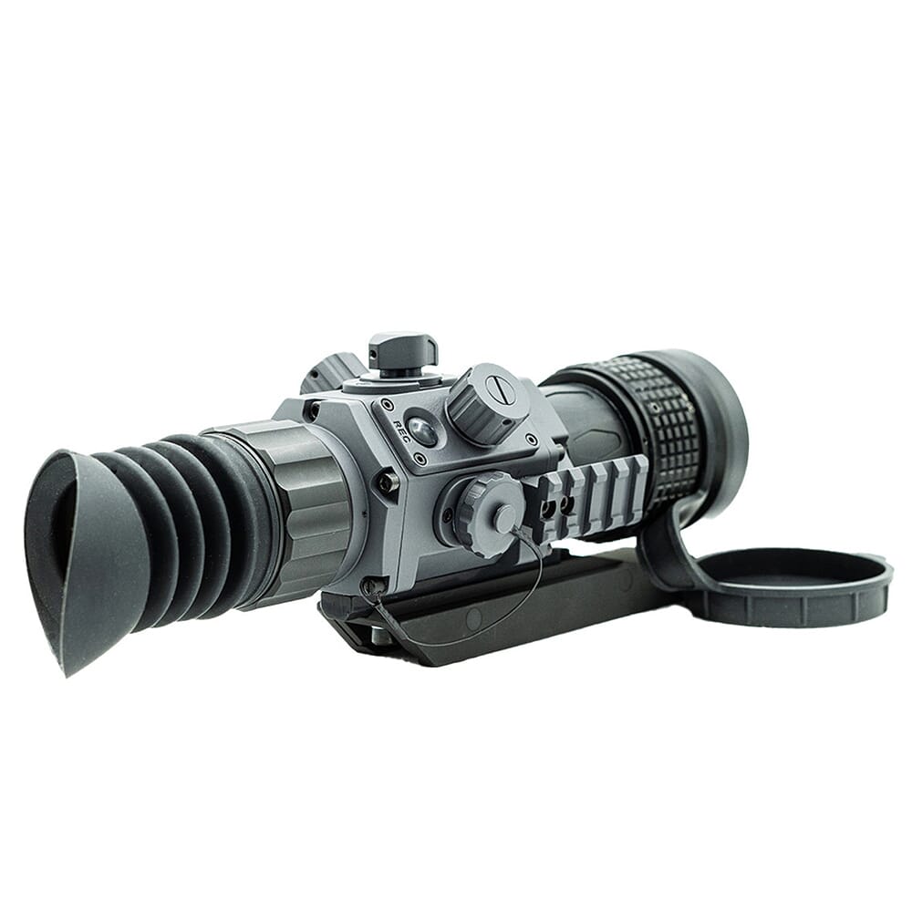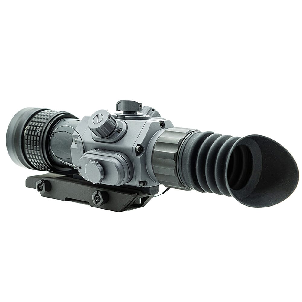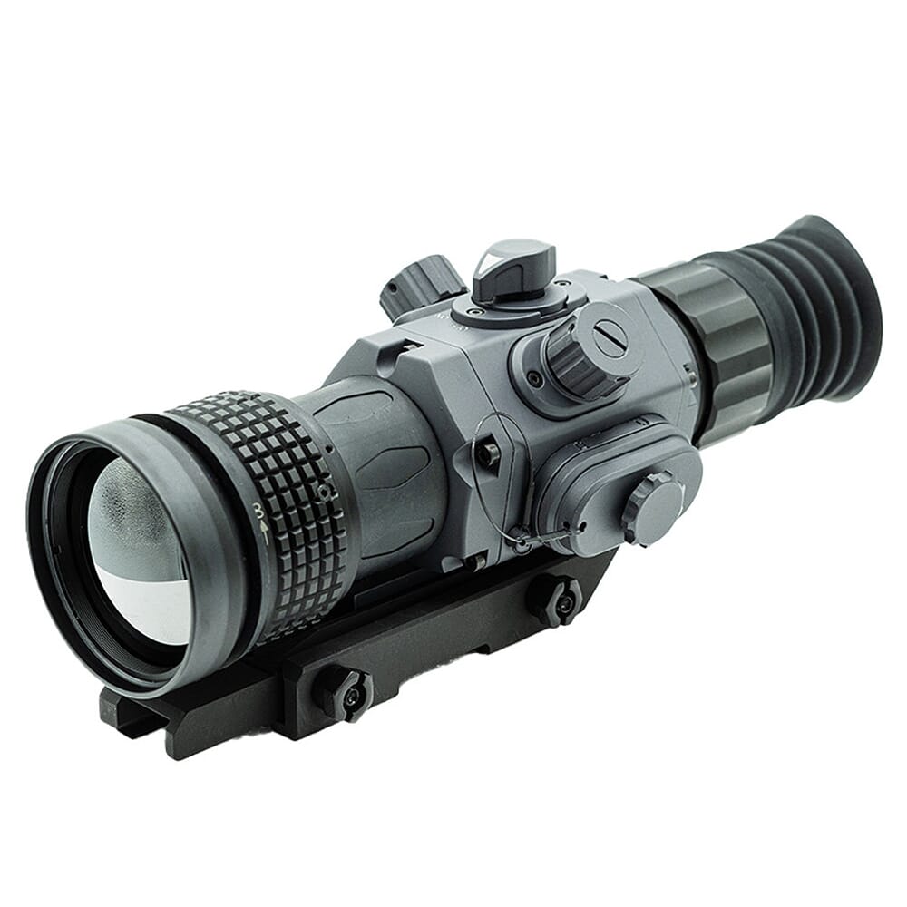 The Contractor 320 6-24x50mm is a weapon-mounted thermal sight designed to stand up to the rigors of real world use. It utilizes a durable alloy metal body and a MIL-SPEC construction, allowing it to easily withstand adverse conditions, harsh weather, and heavy recoil up to .50 caliber. Despite the ultra-durable construction, the Contractor 320 offers a 40% reduction in size and a 25% reduction in weight when compared to thermal optics of a similar class to ensure a minimal impact on weapon handling characteristics. The heart of the Contractor 320 is the exclusive ArmaCORE 12 Micron Sensor, which can detect a man-sized heat signature at up to 1,865 meters away. These heat signatures are projected onto a high-definition XGA 1024x768 AMOLED display, and are viewable in 5 different color palettes – white hot, black hot, target, rainbow, and sepia – allowing the user to adapt the Contractor 320 to their specific preferences or to different environments. Color palettes are selected by the left side knob, while the right side knob is used to control the zoom. Both the left and right knobs can be pushed in to access additional menu options. This ergonomic design allows for easy operation in complete darkness and while wearing gloves.