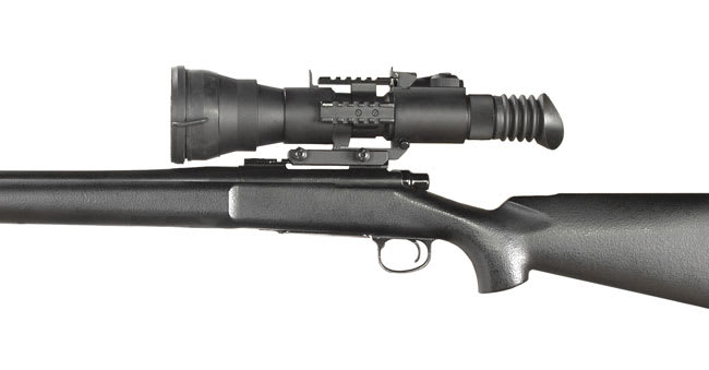 The adjustable brightness illuminated reticle is unique - no other night vision riflescope on the market has such a well-defined (but extremely thin) crosshairs that allows such precise shot placement, even on extremely small targets. The Nemesis is fitted with a Picatinny/Weaver mount that allows for considerable length adjustment ensuring comfortable eye relief can be achieved; three accessory mounting rails allow the easy mounting of our included long range IR illuminator and/or other compatible accessories.